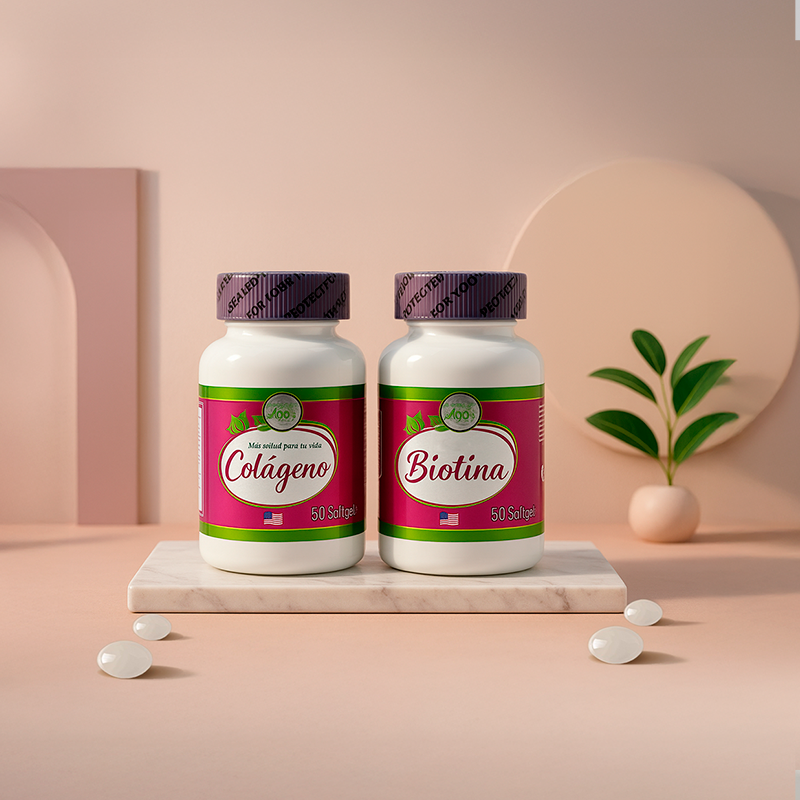 El Colágeno y Biotina regenera tejidos, ligamentos, tendones y cartílagos, facilita la cicatrización, mejora la elasticidad y apariencia de la piel, favorece el crecimiento del cabello y uñas, retrasa el envejecimiento, protege contra el daño oxidativo, convierte alimentos en energía y optimiza el metabolismo de carbohidratos, proteínas y grasas, siendo ideal para enfermedades degenerativas de huesos, venas várices y cuidado integral de piel, cabello y uñas.