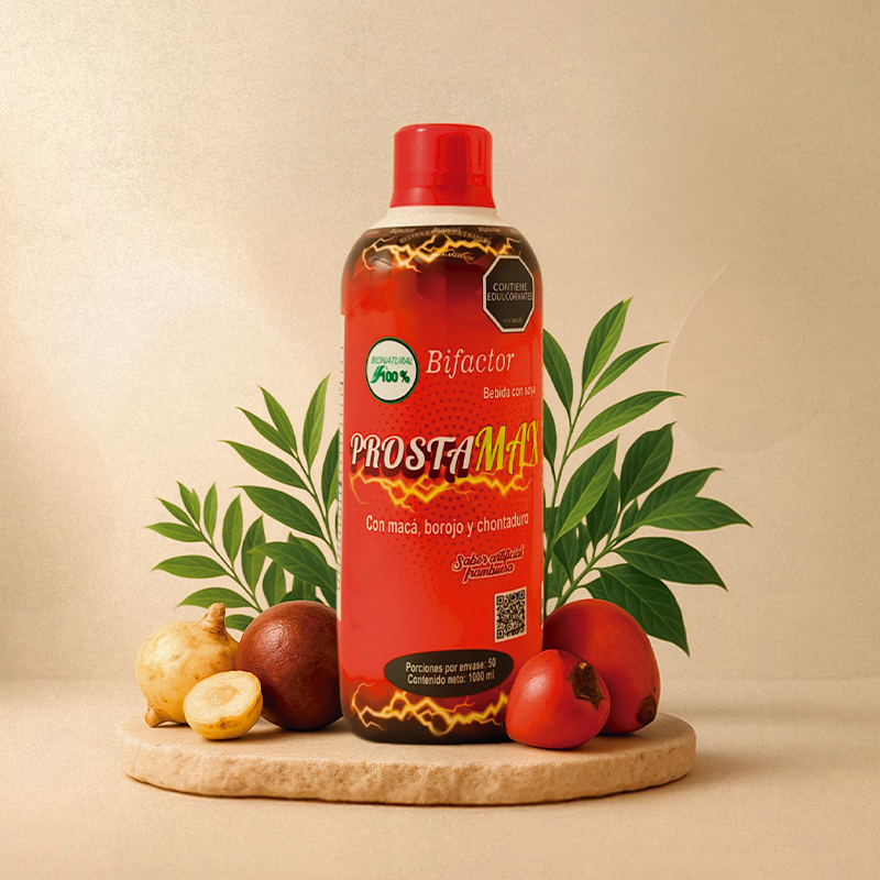 Bifactor ProstaMax mejora la función sexual, aumenta la energía y resistencia física, reduce el estrés y ansiedad, y combate el agotamiento mental. Su fórmula natural con maca, borojó y chontaduro desinflama la próstata, incrementa la fertilidad y el deseo sexual, además de proteger el sistema cardiovascular con propiedades antioxidantes.