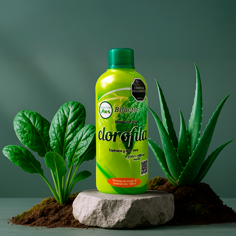 Bifactor Clorofila actúa como antioxidante, digestivo y oxigenador celular y sanguíneo, aumenta la producción de hemoglobina, tiene propiedades anticancerígenas, promueve el buen funcionamiento del hígado y riñón, ayuda a depurar y desintoxicar el organismo, elimina malos olores corporales y reduce los niveles de triglicéridos y colesterol.