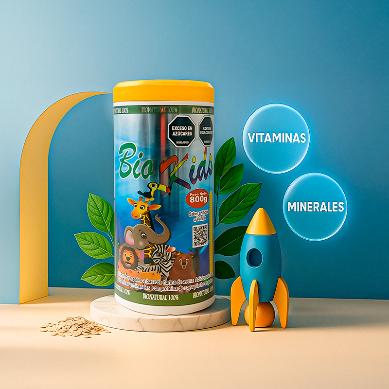Bio Kids es un suplemento nutricional especialmente formulado para niños de 3 a 12 años que combina proteínas de avena y soya con sulfato ferroso, zinc, calcio, fósforo, vitamina C y suero de leche para prevenir la anemia y desnutrición infantil. Este producto fortalece el sistema inmunológico, favorece el crecimiento y desarrollo adecuado, estimula el apetito y ayuda en la prevención de enfermedades virales y respiratorias, proporcionando los nutrientes esenciales que los niños necesitan para un desarrollo óptimo de huesos, dientes y defensas naturales.